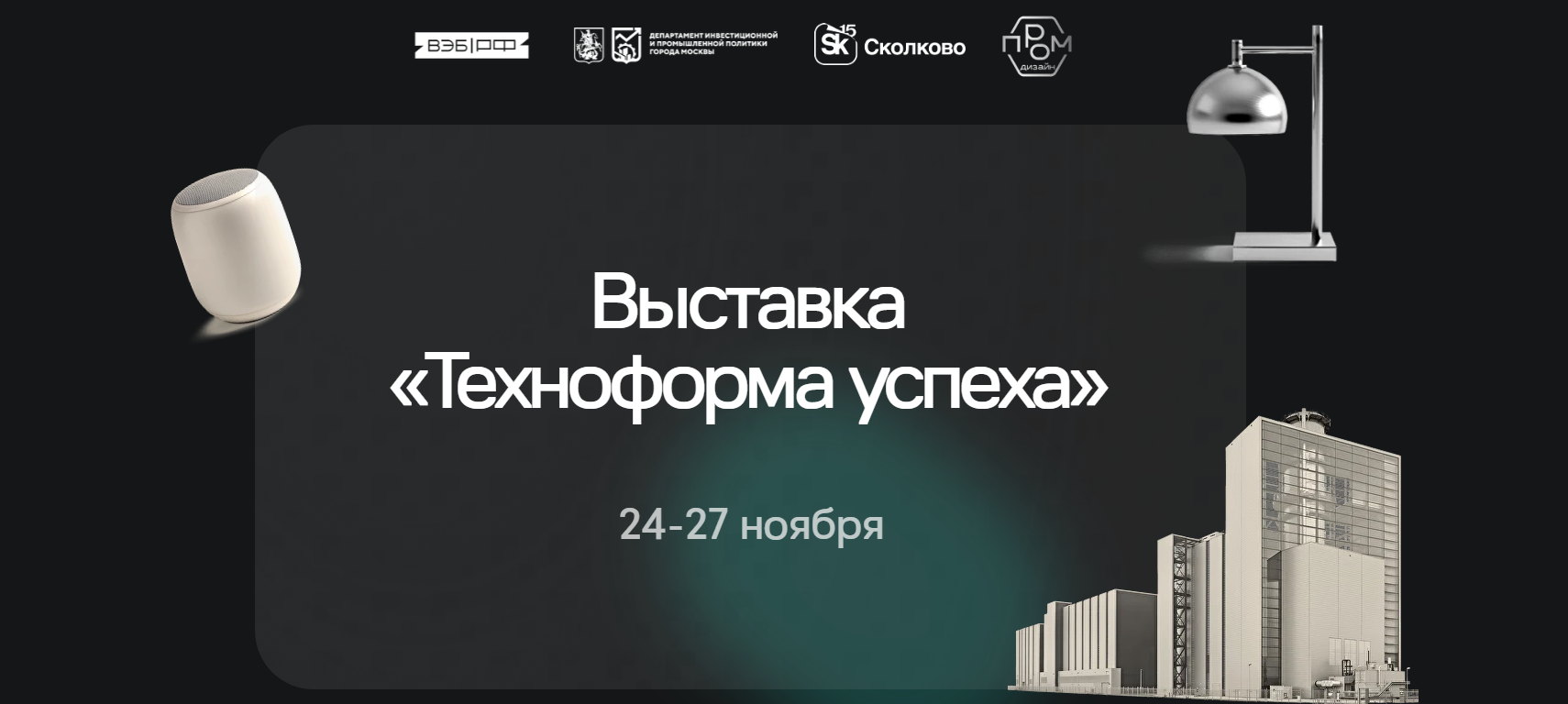 С 24 по 27 ноября 2025 года на площадке Городских лабораторий ВЭБ.РФ пройдет выставка «Техноформа успеха» — настоящий праздник для всех, кто в теме промышленного дизайна.